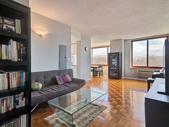 Welcome to Fort Lee's premier riverfront high-rise community. All-inclusive resort-like amenities and exceptional lifestyle comforts. This spacious luxury unit offers unique panoramic views of Manhattan skyline. Open, bright, and inviting. Expansive windows, contemporary layout, and distinctive quality finishes throughout. Kitchen is outfitted with custom cabinetry, granite counters/serving bar, and recently updated with SS appliances. Ample storage and laundry in unit. Residents enjoy easy NYC transit and a revitalized downtown with new restaurants, assorted shops, and family entertainment. Notable indoor amenities include 24hr doorman, concierge, guest valet, security, fitness center, community room, library, children's playroom, dry cleaning and convenience store. Building is pet-friendly. Outdoor green spaces with BBQ and pool. A memorable evening stroll on the gorgeous promenade with the City as your backdrop is sure to complete your one-of-kind experience living here.