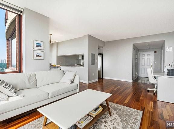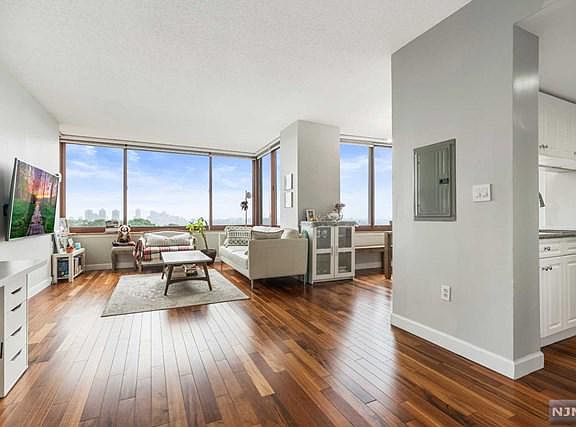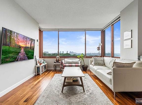 Amazing luxury Condo in beautiful town of Fort Lee, NJ. This welcoming home has a remarkable view of Manhattan skyscraper and Hudson River. The Condo consist of spacious one bedroom, renovated full bathroom and half bathroom - currently converted to walk in closet that can be easily converted back to a bathroom, 936 sqft, high ceiling, and new paint. New hardwood floors, modern kitchen with granite countertops, new marble entry foyer, big windows, and laundry in unit. The hotel like amenities include 24 hours security, management office on site, a pool, fitness center, library, kid's play room, community room, deli/cafe store, dry cleaners, and huge courtyard. One deeded indoor parking included in HOA. Walking distance to Manhattan express bus and GWB, close to shops and schools. You get all these plus a top rated Fort Lee School #1.