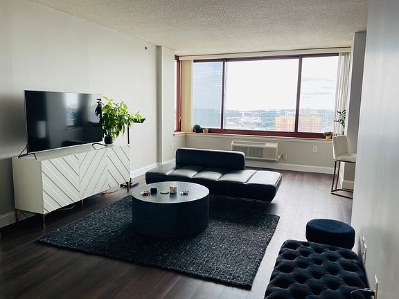 Enjoy views of the George Washington Bridge and Hudson River from this spacious, modern apartment. The entry foyer leads into a bright living room and breakfast area. The primary bedroom features an en-suite full bath, a second bedroom and additional full bath and in-unit laundry. This residence offers ample closet space and is situated in a full-service building with top-tier amenities. Close to transportation, shopping, and entertainment, it provides an easy commute to NYC. No pets. Tenant responsible to pay utilities, water included. 2 car parking in the garage are included. Requirements: lease application NTN report, proof of income.