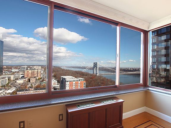 Absolutely AMAZING! If you're looking for a WOW factor - this is a home for you! This luxurious one-bedroom high-rise condo at The Palisades is spacious and bright, with a spectacular view of GWB and Hudson River. Beautiful kitchen w high-end appliances, SubZero fridge, granite countertop and more. Oversized closets and an extra shower in the bedroom! Very luxurious bathroom with jet tub and beautiful sculptured tiles. Hardwood floor throughout the apartment, upscale mosaic tiles in kitchen and entry hall, crown moldings and lighting you will really appreciate! Fantastic location, commuters dream, close proximity to shopping and restaurants, walking distance to Riverside Park. Indoor parking for you and valet parking for guests. A 24 hours concierge and doorman, elevator, exercise room, play room, sauna, outdoor swimming pool, BBQ area and more.