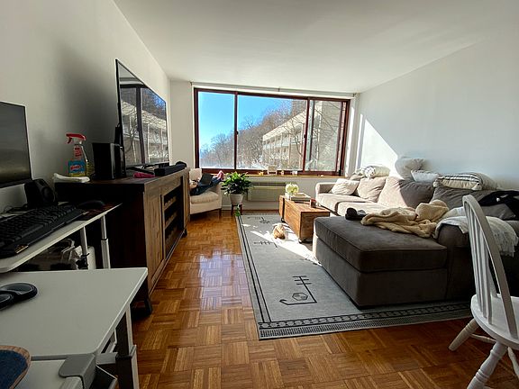 A bright and spacious 1-bedroom, 1 -bath apartment with stunning NYC skyline views located in the lower tower of The Palisades, a full-service luxury condominium in Fort Lee. This unit features an open layout with large windows, in-unit washer and dryer, and includes 1 indoor parking spot. Residents enjoy top-tier amenities such as an outdoor pool, fully equipped gym, community room, library, children's playroom, and visitor valet parking. Conveniently situated near restaurants, shopping, parks, and public transportation, with an easy commute to New York City. Lease application, NTN report, proof of income, tax returns, tenant's insurance, and a $500 move-in fee are required. At least 1 year