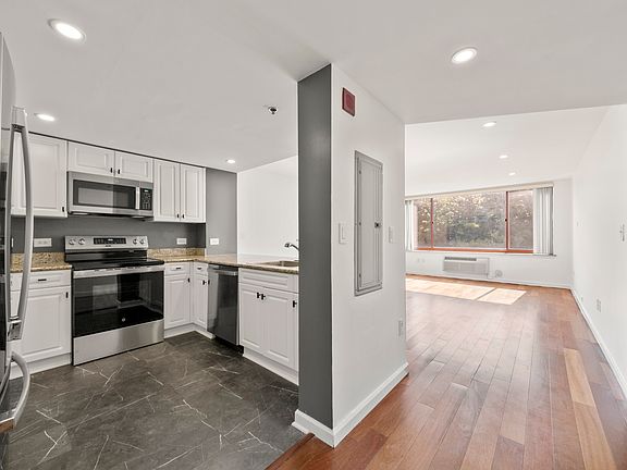 Experience luxurious living in this stunning apartment, featuring brand-new stainless steel appliances, recessed lighting, elegant wood floors, and fresh paint throughout. Enjoy top-notch amenities, including 24-hour doorman service, a concierge, a state-of-the-art fitness center, visitor valet parking, an outdoor pool with BBQ area, a children's playroom, and a dog park. Benefit from on-site management and relax in the beautifully designed courtyard/deck with tables and chairs offering breathtaking NYC views. All of this is included in Rent, along with two designated parking spaces. Just 20 minutes from NYC, this home provides both convenience and comfort.