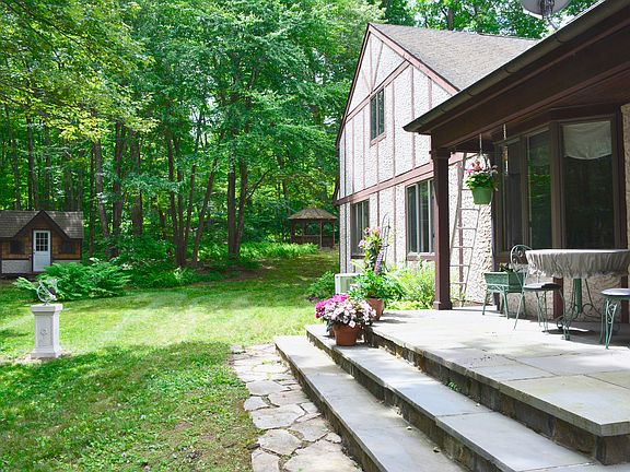 Custom built country home in quiet, private wooded setting on a cul-de-sac.Spacious sunny living room,wood paneled family room with fireplace, bay window, skylights & cherry wood floors. Bright gourmet kitchen with granite counters & skylight and spacious first floor master with remodeled bath. Three bedrooms upstairs with expansion possible into large bonus area. Pleasant level yard with stone walls & room for pool. Quality materials throughout this custom built, one owner home.