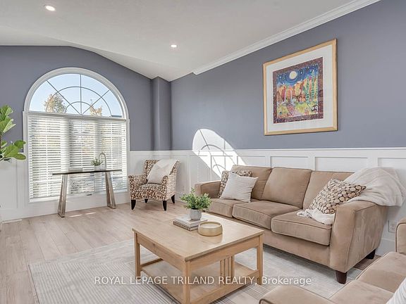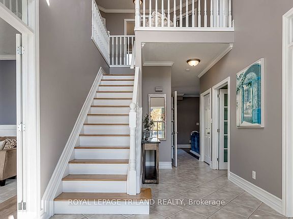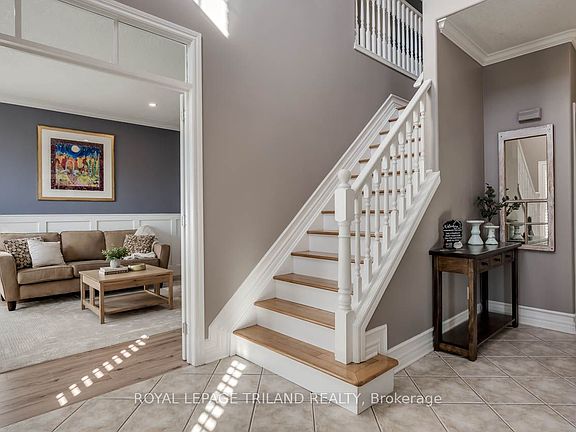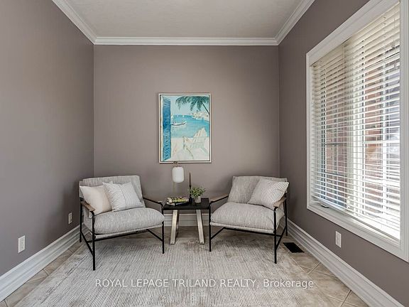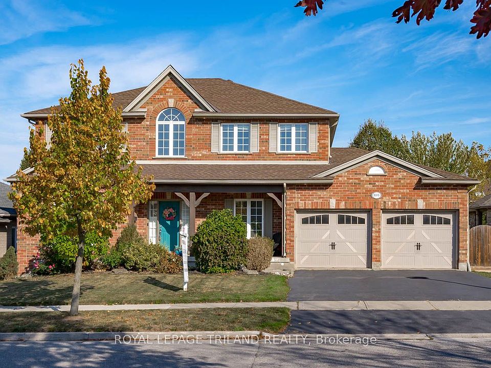 Presenting 100 Optimist Park Drive, an impressive 4+1 bedroom, 4-bathroom, all-brick family house located in the highly desired Byron area of London. This two-story residence is meticulously maintained and offers a functional yet elegant layout. You'll notice high-end details throughout, such as transom windows, French doors, crown moulding, and wainscoting. Enter the dramatic 20-foot foyer and explore over 2,500 sq ft of main living space, plus an additional 1,100 sq ft on the lower level (furnace replaced in 2022). The ground floor features a dedicated office/den, a generously sized living room, and a useful butler's pantry leading into a gorgeous kitchen. The kitchen boasts custom maple cabinetry, sleek white quartz countertops, a practical walk-in pantry (updated 2020), and new appliances (2023). A breakfast bar overlooks the luminous dining and family rooms, which share the warmth of a central fireplace. The expansive outdoor area features a two-tier deck spanning over 600 square feet, providing a stunning view of the private, fully fenced backyard. This retreat includes mature trees, a durable stamped concrete patio, and a saltwater hot tub-perfect for entertaining guests or simply relaxing. Upstairs, an open, sunlit hall connects four large bedrooms; three benefit from their own walk-in closets. The primary bedroom features a four-piece en-suite, while the second bath offers a deep soaker tub and dual sinks. The lower floor is intelligently set up with an open-concept second family room with a gas fireplace, and a versatile fifth bedroom with a large window, two closets (including a walk-in), and a third fireplace-making it perfectly suited as a gym, home office, or den. With its private exterior access, the lower level is an excellent candidate for a granny suite. Located near numerous parks, sports fields, The London Ski Club, and highly-rated schools makes this home an ideal blend of comfort and convenience. Don't let this rare opportunity pass you by!
