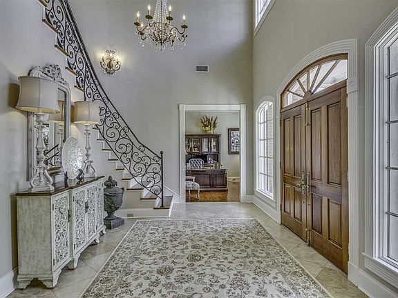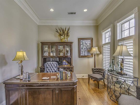 Bridgewater Beauty! All the bells and whistles here! Beautiful grand foyer with sweeping staircase, heart pine flooring, study, formal dining room, butlers pantry plus large pantry, fabulous kitchen with large center island, double ovens, gas cooktop, etc., wonderful keeping room with fireplace and built ins, family room loaded with windows that overlook the beautiful backyard, family room also has a fireplace, her office is off the kitchen and loaded with cabinet and countertop space, guest room downstairs, built in cabinets down the back hallway makes for tons of storage space, large laundry room with a sink makes a great staging area for parties. The large master bedroom is on the opposite side of the house and has its own private courtyard along with a nice master bathroom. One of the large walk in closets in the master serves as a tornado room. Up the back stairs is a huge bedroom and bathroom that is very private. Up the front staircase are 2 nice size bedrooms each with their own nice bathrooms, upstairs TV room along with a playroom, and an exercise room that leads to the upstairs balcony finishes out this side of the upstairs area. Wonderful covered back porch leads to the truly fabulous pool area. Saltwater pool with a sunbathing area plus a hot tub. Large pool house complete with a kitchen area, fireplace, and full bathroom makes for a great place to relax and watch TV. This house is a delight to entertain in!