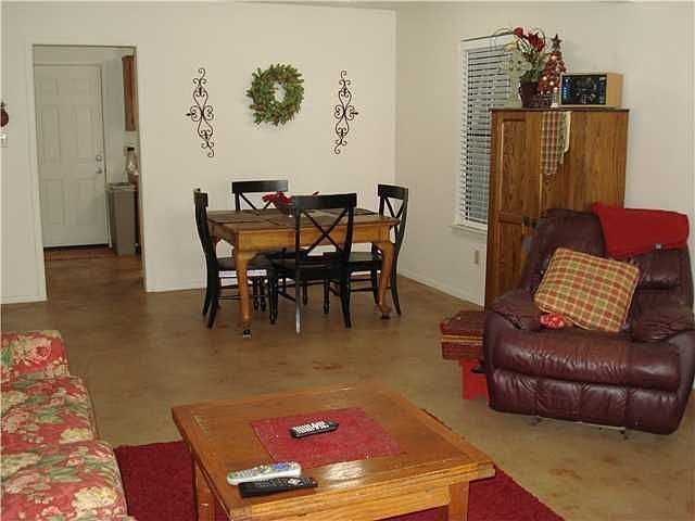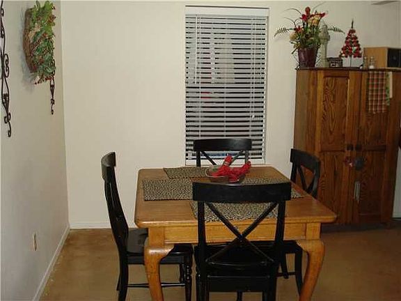 Great location! Stained concrete floors, 2in faux wood blinds, garage door and a fenced back yard. This 2 bedroom 2 bath duplex is updated and ready to go! Open living room and dining room. Refrigerator and dish washer already there....washer and dryer connections.