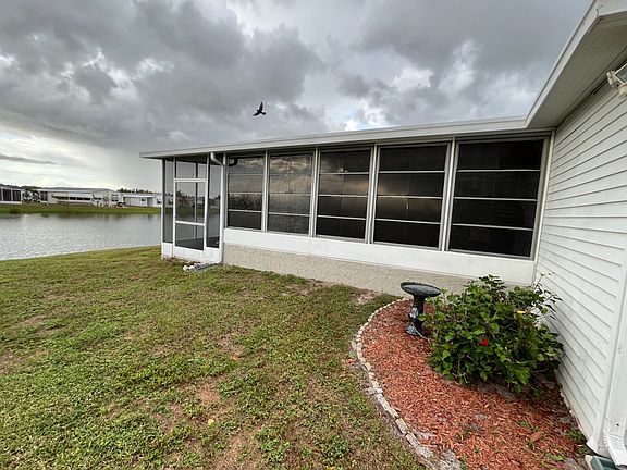 This is a must-see home on a large lot located in The Gardens on the lake. Two bedrooms, two baths, and a family room. The air conditioner was replaced in 2018, the water heater in 2011, and the roof in 2017. This home has an inside laundry room off the kitchen with a pantry. This is a 1991 Palm with 1652 sq. ft. of living space. Double driveway with a large shed and carport with electric hurricane shutter on side of the driveway. This home comes turnkey with everything you need to make this your home. This home has two lanai one that has vinyl windows facing the water and a smaller lanai that is screened in looking out on the water either one you can set and have coffee in the morning or a glass of wine while playing cards with neighbors. This home is in a 55+ community with a lot of rent of $1028 per month + $58.15 pass-through tax. The lot rent includes mowing, edging, trimming, High-Speed Internet, 2 HD boxes, and 200 cable channels. Don't wait too long because this home will not last long. The Gardens is a pet-friendly community. All listing information is deemed reliable but not guaranteed and should be independently verified through personal inspection by appropriate professionals. Integrity Mobile Home Sales cannot guarantee or warrant the accuracy of this information, measurements, or condition of any property. Measurements are approximate. Lot rent is subject to change.