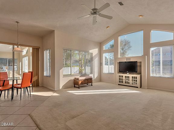 Don't Miss Out! Move in ready! New Roof put on in Feb 2022. This 3/2 split floor plan welcomes you with 12' ceilings and plenty of windows for natural light. Architectural designs throughout with niches, tray ceilings, & rounded corners. Relax on your enclosed lanai which takes you out back to a partially fenced in area for your pets or small children. This home sits on a Oversized corner lot on a cul-de sac... with circular driveway & oversized garage for plenty of parking and your toys. This home has a huge kitchen and plenty of room for a growing family. Home is centrally located in Daytona Beach close to the speedway , ISB, 95, schools, restaurants, shopping , and only 10 min to the beach. Home has a neutral palette so bring all your creativity with you and make it your own !