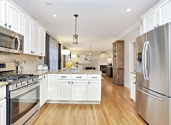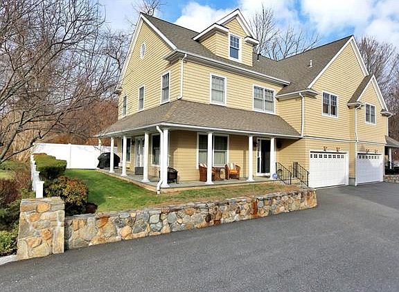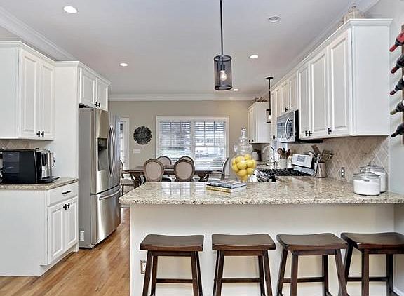 Reborn. An amazing transformation of 2006 home to a 2017 show stopper! Yes, this townhouse is a condo, though it looks and feels like a single family new construction residence with its wrap-around covered porch with columns, stone walls, 2-car garage, shingled exterior and white privacy panel fence. Front entry lead to the main staircase and the open floor plan featuring a newly restyled kitchen with SS appliances, breakfast bar, recessed lights and pendant and open to the family room. Family room is stylishly finished with globe chandelier, added crown moldings, triple set of windows, gas fireplace and hardwood floors (all refinished). The formal dining room offers a large cased opening to the hall, light grey palette with chair rail, crown, base moldings, two sets of large double hung windows and triple light fixture. The powder room includes wainscoting, Kohler pedestal sink, adjusting round and beveled mirror and hardwood floors. The master bedroom is sumptuously finished with pale wall colors, drum pendant, sparkling white trim, full bath and walk in closet. The master bathroom was redecorated with custom built in vanities, shelving and additional cabinetry with furniture style legs, crown moldings, deck/tub and shower with seat. Love the mini chandelier! Two additional bedrooms (one was utilized as an office) including hardwood floors, ceiling mount lights and full walk in closets. Both bedrooms are serviced by a full bath with tiled tub/shower, adjusting mirror, triple vanity light, ceiling light/fan and vanity topped with an all-in-one durable yet stylish white counter top. Need more room? 42’ by 29’ walk up attic could be finished with possibilities of adding a 4th guest room, studio, exercise room, office suite, media room, etc. Two car garage, city water, city sewer, gas and central A/C.