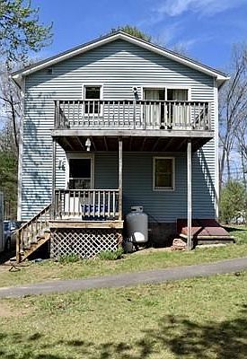 Great location for this well maintained vinyl sided colonial style home with distant water views of Hampton Ponds. This home has so much to offer and features: Master bedroom with sliders out to balcony, some replacement windows, security system, roof (3 years old,) 2 full bathrooms, BBHW heat- propane fired, front covered porch, rear wood deck, shed, 1st floor dining room & town water and sewer. Nothing to do here but move in! House was rebuilt in 1990, APO.