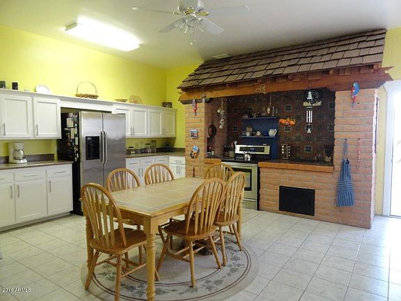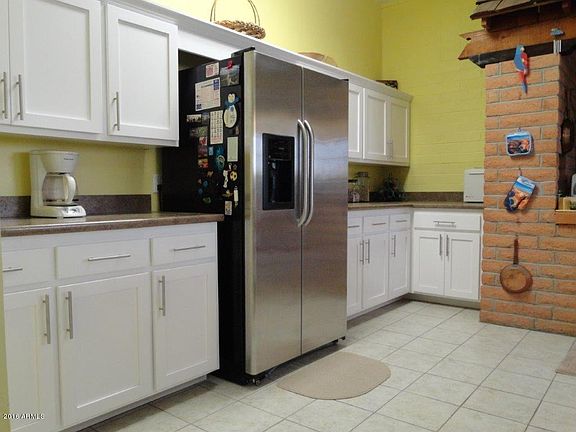 You will be proud to own this move-in-ready property in Circle City. The spacious house with 3+ bedrooms & 2 baths, large family room & huge kitchen has been painted & upgraded inside and out. Enjoy the kitchen with a gorgeous brick hearth, built-in bbq grill & new separate stove. Refaced cabinets,new appliances, windows & 2 pantries complete the clean, streamlined style. The property includes 2 lots with a fully-enclosed courtyard PLUS a huge storage area with carport, 2 storage sheds & 3 gates to the storage area. There's plenty of room to enjoy outdoor living with a covered front porch & rear courtyard patio plus a private exit & patio off the master bedroom. Community park & recreation area are steps away. ATV riding - BLM nearby. Convenient location between Surprise & Wickenburg.