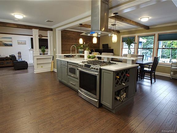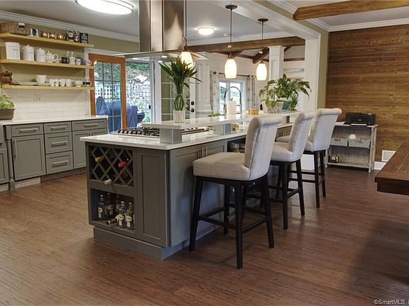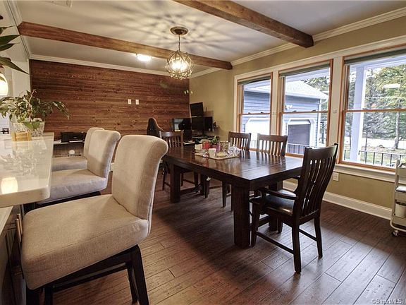 As you enter this renovated, beautiful ranch, you'll feel like you're stepping into the pages of an Architectural Digest spread. The kitchen is stunning with quartz counters, subway tile backsplash, an open shelf design, and just the right touch of lighting. The thoughtful balance of counter space and appliance placement will please chefs at all culinary levels. The kitchen is open to the dining room accented with a rustic chic, wood plank wall and a view of the front yard through three large windows with automatic shades. The great room is spectacular with a vaulted and grooved, pickle plank, beam ceiling, stone tile surround over the wood stove, shiplap walls and a storage closet accessed through a modern barn door. The two guest bedrooms are sized to accommodate oversized furniture. The primary bedroom brings in great light from two walls and has an en-suite, full bathroom with an oversized jetted tub, walk-in cedar closet, and a brand new stall shower with stone floor. The backyard, accessible from French doors from the kitchen or sliding doors from the great room, lends itself to both relaxing and entertaining. The deck is creatively shaped to optimize areas for dining or sitting. Stone stairs lead to the upper level where a fire pit sits, amidst flowering shrubs. The two-car garage has painted walls, epoxy flooring and enough space for extra storage. The basement is super clean and dry thanks to the regrading of the soil along the perimeter of the foundation. There are many touches to this home, be sure to leave yourself enough time to really take it in all the details.