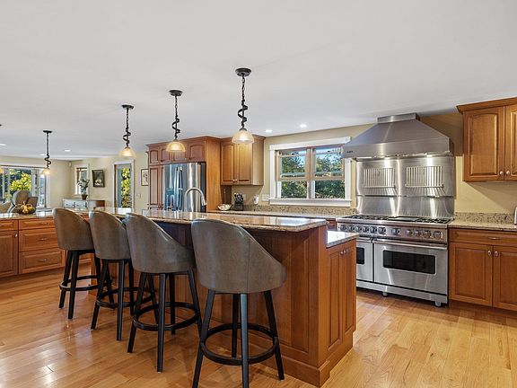 This extraordinary waterfront home is situated on the shores of Webster Lake offering a tranquil escape with breathtaking views, direct access to the water and a MOTIVATED SELLER. The 332 ft of waterfront in the beautiful town of Franklin which is going through a revitalization project boasts a private sandy beach and a “U” shaped crank up docking system. The nearly 65 acres with an adjacent 151 acres of WLC Land is assured to provide you privacy. The yard is beautifully landscaped with perennial gardens, raised bed garden boxes, blueberry bushes and apple trees. With 3+ bedrooms, 3 floors of living space, 2 full and 2 half baths you have plenty of space for family and guests. The gourmet kitchen is a chef’s dream; complete with a huge pantry, a spacious island and a 6 burner Viking Stove. The main living area is all open with hardwood floors, a gas fireplace and a sunroom for admiring the beautiful sunsets. The partially finished lower level with a stunning fireplace adds an extra dimension to the property, providing additional living space that can be customized to suit your preferences. The heated three-car garage with unfinished space above provides ample space for vehicles and storage. The home was gutted and rebuilt in 2016. Additional enhancements in 2016 include a whole house generator, AC, a 4-bedroom septic system, a new well, lawn irrigation, 2 heating systems, Security System and so much more. This waterfront paradise promises an extraordinary living experience.