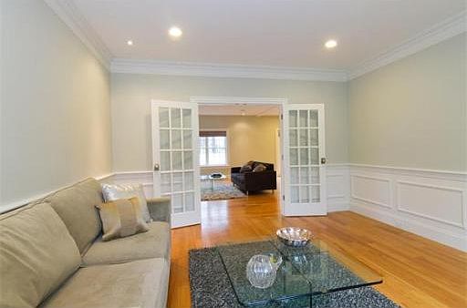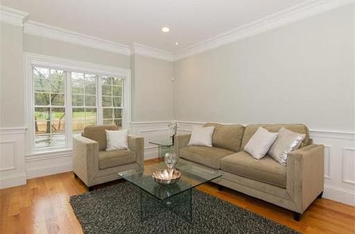 This pristine ten room luxury home boasts five bedrooms,4.5 baths, Designer Kitchen with granite counter tops,living room, family room, formal dining, media room wired for surround sound, exercise room, spectacular fenced in back yard, two car garage with Mahogany doors. Golf Course Views. Special features include: two fireplaces in family room and master bedroom,en suite baths, complete security system, sprinkler system, custom window treatments, designer lighting, Red Oak wooden floors throughout with flush finish and Cambria Marble flooring in Foyer. Pine Grove Ave located in Newton with easy access to Routes 95 &128 make for an easy commute. Accompanied showings by appointment only.