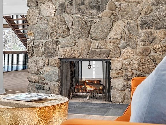 Refined modern living in one of Chelmsford's coveted neighborhoods. Redesigned, restored & updated, replete of natural light w/ expansive walls of glass/windows, impressive great rm w/ vaulted ceiling, wall-to-wall sliding doors/private deck, connecting the outdoors. Outdoor space is a private oasis in nature, comprised of 3.26 acres, unparalleled lovely private grounds, mature woods & lazy stream. Original design elements: glass block wall in master bath, stonewalled double-sided wood burning fireplace, wood rail/iron floating staircase in great rm, & private 2nd floor den. Single level layout, 4 well-appointed bdrms, 3 full baths, stunning kitchen w/ streamlined cabinetry, GE Cafe appliances, quartz counters. Master bdrm includes spa-like ensuite & separate walk-in dressing rm. LL guest quarters w/ walk-out to private outdoor space, or add au pair suite/in-law apt/home gym/playrm. Laundry rm, closets/storage rm, mudrm, 2-car garage, separate drive for rec. vehicles, storage shed.