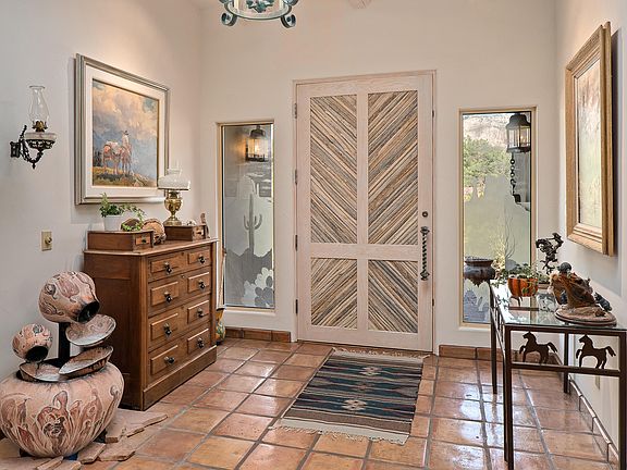 Home should reflect an effective recent sales price of $1.1M given the structure of the contract that included the adjoining lot .... If miles of hiking/biking trails, no HOA, & HUGE red rock views, top your ''must have'' list - - search no longer. This exceptional hilltop sanctuary with its long sweeping driveway & luxurious indoor swimming pool boasts a private, ''resort like'' energy. 3 Kiva fireplaces, towering walls of glass, & colorful Mexican tile throughout highlight this quality Santa Fe build by John Griffin. Cabinetry & doors have authentic Ocotillo cactus inserts. Half barrel ceilings with vigas reminiscent of traditional adobe construction methods of the American SW. Inner courtyard (with dramatic water feature) has direct view of Twin Buttes. Small patio off kitchen has built in grill, & roof top deck area from upper level suite is perfect for stargazing.
