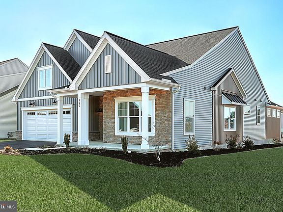 This quaint, 1-story home in the Winding Creek 55+ community features a welcoming front porch, a 2-car garage with mudroom entry, and 9’ ceilings. Stylish vinyl plank flooring flows throughout the main living areas. At the front of the home are a study, secondary bedroom, and a full bathroom. The great room, accented by a fireplace with floor to ceiling stone surround and box beam mantel, opens to the well-appointed kitchen with upgraded appliances and heightened cabinetry, quartz countertops with tile backsplash and a large pantry. The sunny dining area provides access to a screened in porch. Tucked quietly to the back of the home, the spacious primary suite includes an expansive closet and a private bathroom with a tile shower and double bowl vanity.