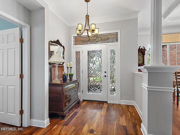 Beach living, A+ schools, and a preserve lot on over a 1/2 of acre in the desirable neighborhood of Old Palm Valley, all add to the appeal of this brick cul-de-sac home. Hardwood throughout the first floor, updated kitchen with stainless steel appliances, gas fireplace and a gorgeous enclosed temperature controlled Florida room are just a few of the plusses of this 2900+ sq ft, 4 bedroom, 3 bath home. Bonus room upstairs is the fourth bedroom with full bath. New hot water heater and electric panel in 2023. Large conservation lot includes wood decking, hot tub and tons of privacy. Close proximity to schools, YMCA, shopping and the beach.