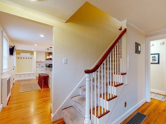 Completely updated 3 Br, 2 Bath Cape just one block from the lake. Absolutely stunning kitchen addition in 2018 with incredible open space, a large island, solid counters, recessed lighting and hardwood floors. 2 designer baths on the 1st and 2nd level. The living room provides tons of light and is capped off with a fireplace. Also on the first floor is an additional bedroom currently being used as an office. The second floor boasts two bedrooms with front dormers providing good light, and a full bath with walk in shower. The walk out lower level has a bonus room with high ceilings, separate laundry room, and versatile space perfect for a family room/play room/entertainment space. The large fenced in backyard has been updated with bluestone hardscaping, stone walls, and a fire pit area. Some of the features are central air on the first floor and lower level, heating system converted to gas, updated electric service, most windows replaced, insulated, and more. Move right in