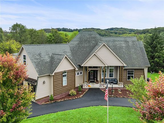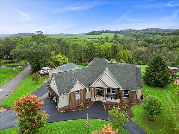 The ONE you have been waiting for! Built in 2016, this gorgeous 4 bedroom ranch style home offers the perfect blend of modern comfort and timeless charm. Nestled in a desirable neighborhood in the Armstrong School District, this property boasts an open floor plan, 14ft ceilings in a sun filled living room, gas fireplace, breakfast nook AND dining area large enough to accommodate large gatherings. The kitchen is a chef's dream with ample cabinet space, 2 gas stoves and granite counter tops throughout. Solid oak floors compliment the reclaimed century old beams featured throughout the home. The laundry is conveniently located on the main floor, as well as a large finished game room including a pool table and projector screen for all of your entertainment needs! The unfinished basement is a blank slate ready for your vision. Step outside to a large, fenced in backyard featuring an expansive deck with hot tub, as well as a new above ground pool and deck. Large detached garage 24' x 32'.