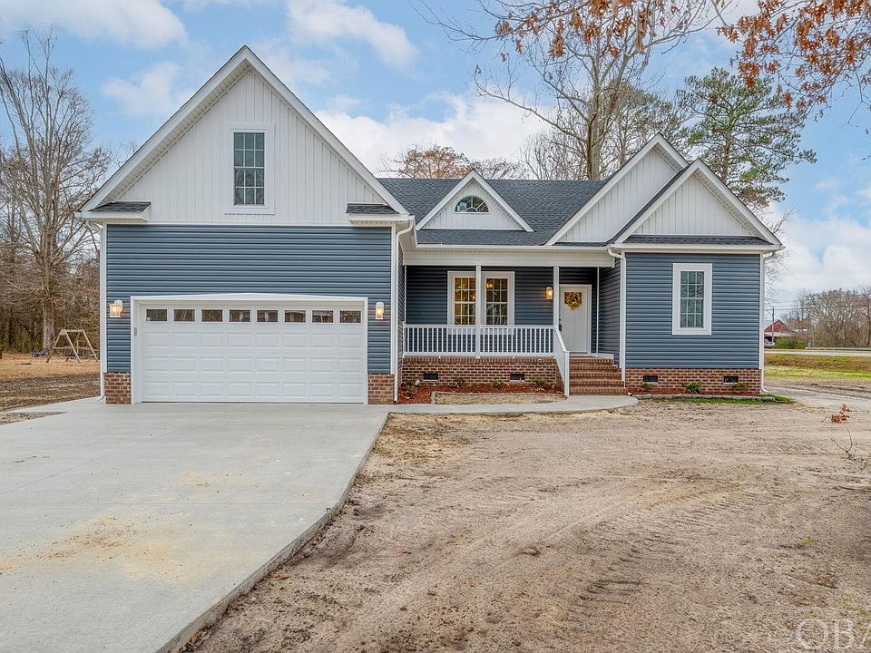 New construction located just over the county line. Close to HWY 17 for commuting to VA. This home features a large kitchen with quartz countertops and a full stainless appliance package including the refrigerator. Open concept living room and kitchen with dining room. 3 Bedrooms located on first floor. Finished Room Over Garage is only room on second floor. Large deck with easy access to the kitchen which will make entertaining a breeze. Upgraded flooring package! Ceiling fans in all bedrooms, living room and bonus room. Double car garage! As an additional upgrade, builder has used 2x6s and additional insulation on end of house facing Hwy 17 to help reduce noise.