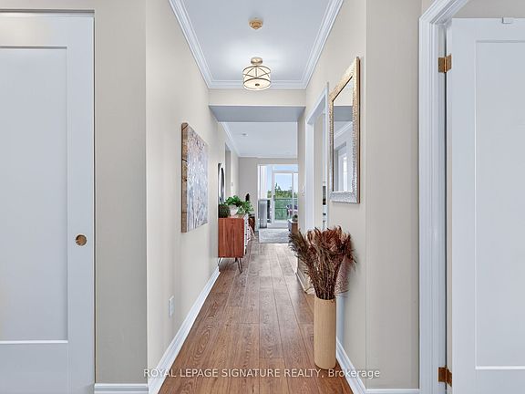 Renovated from top to bottom with high-end finishes; no expense was spared! This upscale move-in-ready corner suite combines the ease of condo living with hotel-style amenities, all while offering the warmth and comfort of a true home, just steps from everything you need. Every corner exudes luxury. Start your mornings in a gorgeous chef's kitchen featuring custom wood cabinetry, Caesarstone quartz counters, stainless steel appliances and ample storage. The spacious primary bedroom includes a walk-in closet and ensuite with double sinks. Both bathrooms are beautifully updated with porcelain tile and quartz countertops. Sunlight pours through large windows all day long, while ensuite laundry and custom built-ins in the hallway closets add everyday convenience. Step onto your northwest-facing balcony for morning coffee, evening wine, or a good book, complete with maintenance-free flooring. One parking space and a large storage locker are included. The maintenance fees cover heat and water plus Premium Bell TV & Internet for just $47/month. This well-managed building, known for its welcoming community, offers an indoor pool, hot tub, sauna, fully equipped gym, party, games and media rooms, guest suites, library, 24-hour concierge and visitor parking. Residents also enjoy organized social events, making it easy to stay active and connected. The location & walkability is unbeatable, steps from Promenade Mall, Walmart, supermarkets, places of worship, cafes, restaurants, the library, public transit and a wide range of health and medical services; you truly don't need a car to access everyday essentials. Families will love the great school options, while outdoor lovers and sports enthusiasts can enjoy daily walks in Concord Regional Park, a game of Pickleball across the street at Pickleplex Social Club or Golf at The Thornhill Club. Don't miss this chance to join a vibrant, family-friendly community in a beautifully updated suite!