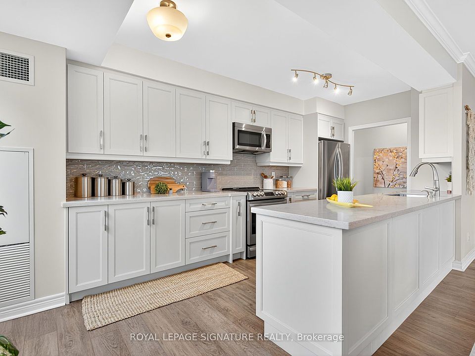 Renovated from top to bottom with high-end finishes; no expense was spared! This upscale move-in-ready corner suite combines the ease of condo living with hotel-style amenities, all while offering the warmth and comfort of a true home, just steps from everything you need. Every corner exudes luxury. Start your mornings in a gorgeous chef's kitchen featuring custom wood cabinetry, Caesarstone quartz counters, stainless steel appliances and ample storage. The spacious primary bedroom includes a walk-in closet and ensuite with double sinks. Both bathrooms are beautifully updated with porcelain tile and quartz countertops. Sunlight pours through large windows all day long, while ensuite laundry and custom built-ins in the hallway closets add everyday convenience. Step onto your northwest-facing balcony for morning coffee, evening wine, or a good book, complete with maintenance-free flooring. One parking space (located right by the door!) and a large storage locker are included. The maintenance fees cover heat and water plus Premium Bell TV & Internet for just $47/month. This well-managed building, known for its welcoming community, offers an indoor pool, hot tub, sauna, fully equipped gym, party, games and media rooms, guest suites, library, 24-hour concierge and visitor parking. Residents also enjoy organized social events, making it easy to stay active and connected. The location & walkability is unbeatable, steps from Promenade Mall, Walmart, supermarkets, places of worship, cafes, restaurants, the library, public transit and a wide range of health and medical services; you truly don't need a car to access everyday essentials. Families will love the great school options, while outdoor lovers and sports enthusiasts can enjoy daily walks in Concord Regional Park, a game of Pickleball across the street at Pickleplex Social Club or Golf at The Thornhill Club. Don't miss this chance to join a vibrant, family-friendly community in a beautifully updated suite!
