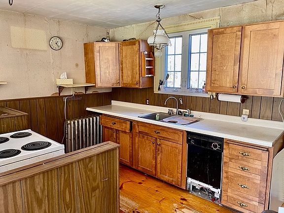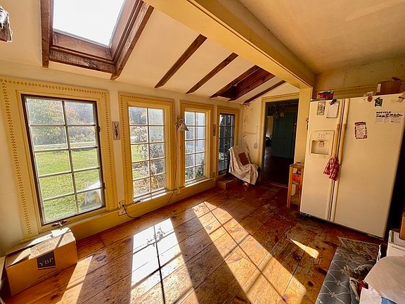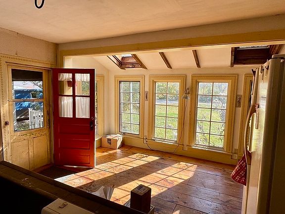 Sitting just up the road from the Chester Train station is this 1850's farmhouse with beautiful pine floors and still holding some of its original charm but needing work. The setting here is lovely. Stroll the yard along a meandering path through mature plantings and along a babbling brook that flows down into the Westfield River. The house has a country kitchen with large pantry and eat in area looking out to the front yard. There is a large living room, dining room, sewing room, bedroom, sitting room, laundry room and full bath to complete the first floor. Upstairs are three more bedrooms and a bath. Walk up attic above kitchen could be converted to additional living space. Between the house and the carriage house/garage there is a screened room and covered porch. Out back is a free standing shed/Small barn that might make a nice art studio.This house has good bones but does need a lot of work- will not qualify for FHA/USDA/VA. OFFERS DUE NOVEMBER 12 at 3 pm.