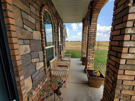 Enjoy stunning sunrises and sunsets from the sprawling patio which comes with this wonderful 4 bedroom home! Features include 10 , 11 and 12 foot ceilings, crown molding, flowing floorplan, gourmet kitchen, three and a half baths, breakfast area, formal dining room, woodburning fireplace, lots of sunny windows and large laundry. Fit for a king sized bed and more, the owner's suite and sitting area will steal your heart! You'll love the owner's bath with 2 wardrobe closets, walk-in double shower, jet tub, and 2 sink vanity. Feast your eyes on the kitchen with light granite counter tops, food prep island, raised serving bar, double oven, glass cooktop, stainless steel appliances, and pull out cabinet shelves. Adjoining laundry has a sink, cabinets, broom closet & rose window. 2 separate bedrooms share a Jack n Jill bath, the 4th BR has a private full bath. This home sits on a corner with beautiful yard, half circle front drive, and side entry triple garage. See it right away!