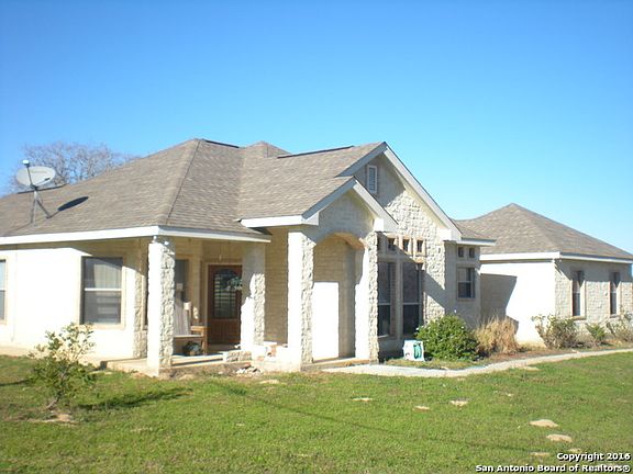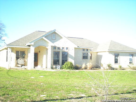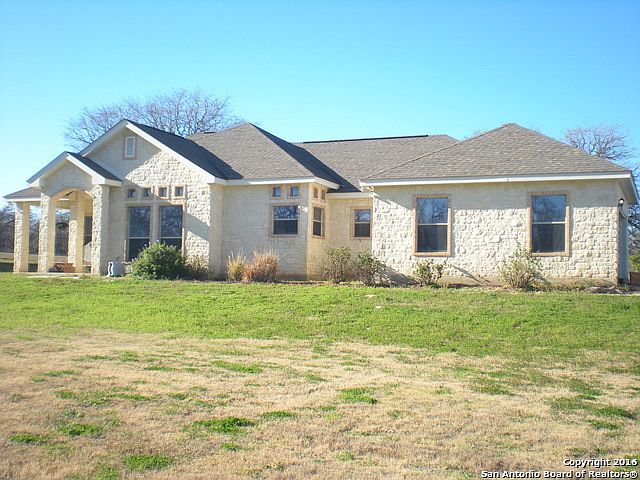Large open Floor Plan - Open Kitchen to Living area and bar between Kitchen and Dining area. Split master with Study Or Office or Nursery or even us as a 4 th bedroom. Home has some new floors Open Floor plan. Also has a 2 car carport, and nice back patio. Home is in a great location and is in the La Vernia ISD. Please call for appt. This home is priced to sell.