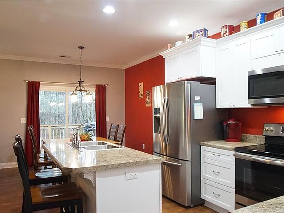 Like New Craftsman Style Home. Private setting with wooded corner lot beautifully landscaped. This open floor with Spacious Great Room & Kitchen is perfect for Family Gathering or Entertaining. 9' Ceiling throughout, Stainless Steel appliances with Abundance of White Cabinetry and Island allowing plenty of work space. Extra room off laundry has pantry and counter with extra cabinets for storage. Lots of windows and glass patio door giving Natural Lighting. Breakfast Nook . Laminate Flooring throughout is great for families or pets. Master BR & bath suite with walk in shower. 2 guest bedrooms. Laundry Room, 2 Car garage. Large Private back deck. Nice level lot with Shade trees for enjoying the outside. Convenient Location just outside Walhalla. Close to Schools. Less than 2 years old ready for you to move in. This home is a great starter home or someone ready to downsize and benefit from being almost new.