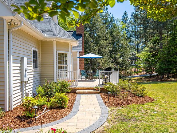 Fine, custom-built home in Clarendon Gardens on a well landscaped corner lot, with outdoor lighting to enhance the home at night. Move-in ready - 3 bedrooms, 2.5 baths and outstanding family room. Hardwood floors and crown molding details in main level LR, DR and Master. New stainless appliances in kitchen plus casual dining and desk space overlooking the back garden and custom, hardscape patio area. Powder Room on main level. 2 guest rooms on 2nd level with great closet space. 700 sqft of walk-in attic storage accessible through closets and family room. First guest room has an additional, large walk-in space for play area or storage. The upstairs Family Room is magazine-perfect with built ins, desk space, and a large area for a comfortable seating area. Pinehurst CC membership availabl