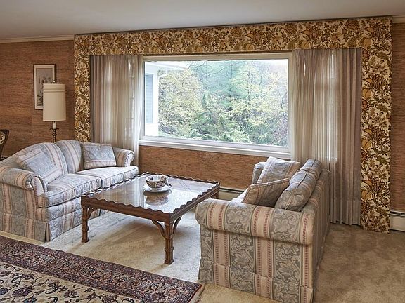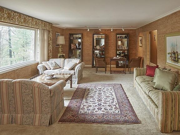 This bright and spacious mid-century residence is sited on over 63,000 square feet of prime land in one of Weston's most desirable south side locations. Built in 1952, this house offers an open floor plan with ten rooms, three and one-half bathrooms and wonderful views of the rear grounds which provide ample space for play area and gardens. The first floor features a 29'x15' living room, a dining room with a fireplace, a sunroom, and galley-style kitchen. A spacious master suite with a bathroom and dressing area, two additional bedrooms, and a full bath complete the first floor. The lower level has three bedrooms, an extra room, and one and one-half bathrooms. There is an attached two-car garage.