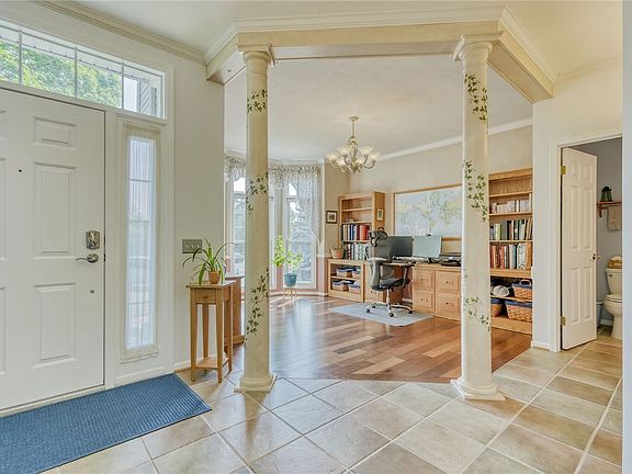 Welcome to 100 Radnor Lane! This stunning property offers a blend of elegance, modern comfort, and a prime location that is sure to impress. Upon entering, you'll be greeted by a grand foyer and formal dining room. The formal dining room is currently being utilized as an office as the office is being utilized as a bedroom. The main level features a generously sized living room with lots of natural light, perfect for entertaining guests or relaxing with family. The cozy fireplace serves as a focal point, adding warmth and charm. The kitchen is a chefs dream with granite countertops, ample storage space and a center island, it effortlessly combines style and functionality. The Master Bedroom and Bathroom were recently remodeled. The master bath has heated floors, heated towel rack and walk-in closet. The finished basement has ample storage and lounging space including a craft room and wood shop. Quarterly HOA is for the maintenance of the Private road and common grounds. Don't miss the opportunity to make 100 Radnor Lane your new home.