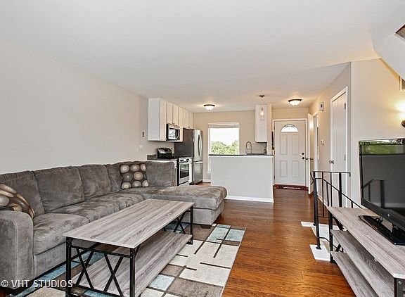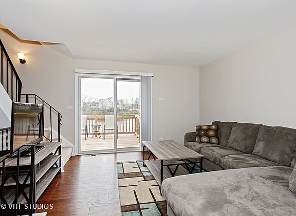 Gorgeous renovation within the past 18 months. Everything sparkles here! This private end-unit townhome backs to Spring Lake with breathtaking views. This space lives just like your very own single-family home, with beautiful modern finishes. Your kitchen with white maple cabinets & gleaming granite countertops includes a full suite of stainless appliances with French Door refrigerator. Both bathrooms boast updated tilework, new vanities & fixtures. A full finished basement family room & laundry offers plenty of additional living space. Flooring & lighting throughout reflect the modern feel of this fully-updated home. The full renovation didn't neglect the mechanicals; it included new high-efficiency furnace, hot water heater, sump pump, newer washer & dryer and air conditioner as well. A large gated deck was constructed in 2016, and offers great outdoor living. 2 parking spots included. Close to tons of shopping, dining & fun at Fox Valley Mall, near Metra & Spring Lake Park