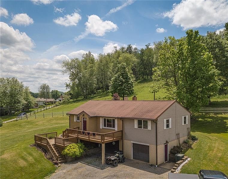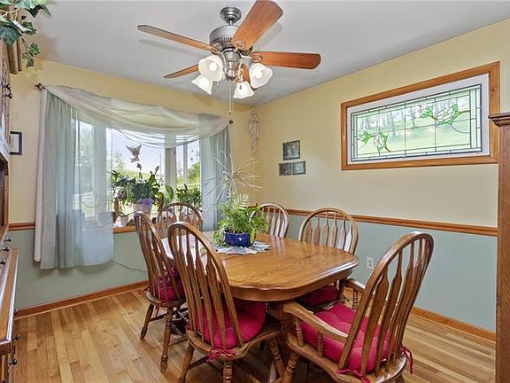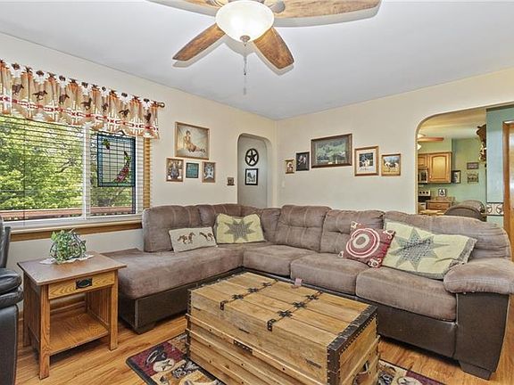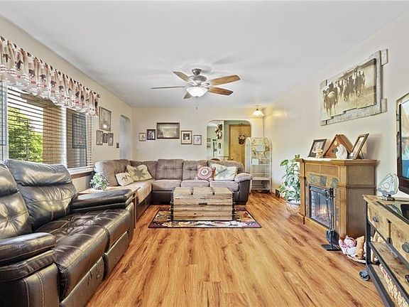 "9.405 Acres" fenced pasture for horses and cattle. Barn in fenced area plus water supply in pasture for animals. Updated ranch with newer decking updated eat in kitchen, formal dining room. New laminate flooring. Hardwood under flooring. Newer furnace, heat pump, garage door, water heater, windows. Woodburner attachment to furnace. 2 car integral garage. 30"x36" barn, 4 stall, 10'x12' each stall, 2nd bldg for hay and equipment storage. Barn has a tack room, feed room, front and back sliding doors, corner feeders, rubber mats in stalls and vinyl aisle. OGM rights transfer with property. Well and spring on property. NEW well drilled Dec 2020