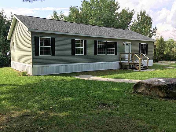 2013 Ranch double wide with 3 bedrooms & 2 baths. Upgraded insulation package for extreme energy efficiency. Vinyl siding and shutters for low maintenance. Brand new vinyl skirting & floors inside. Open concept Kitchen, Dining & Living Room with unique feature: a built-in flat screen TV that swivels 360 degrees for easy viewing! Kitchen includes dishwasher, microwave, fridge, wall oven and electric cooktop. Laundry room has brand new exterior door, convenient for hanging clothes/sheets out to dry. Master Suite has walk-in closet and private bath with double sinks, shower with bench, linen closet. Split layout with 2 Bedrooms and Full Bath on other side of home, gives everyone more privacy. Propane hot air heat, electric HW 40 gallon tank. Town water, brand new mound septic system being installed at owner's expense. Large yard with mountain view, total of 1.64 acres. On a private road just minutes to town, but feels like a quiet country setting. If you're looking for a home that's like new and easy to maintain, then this is the place for you!
