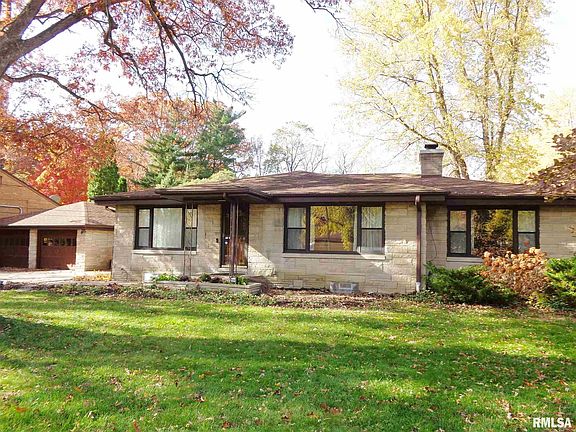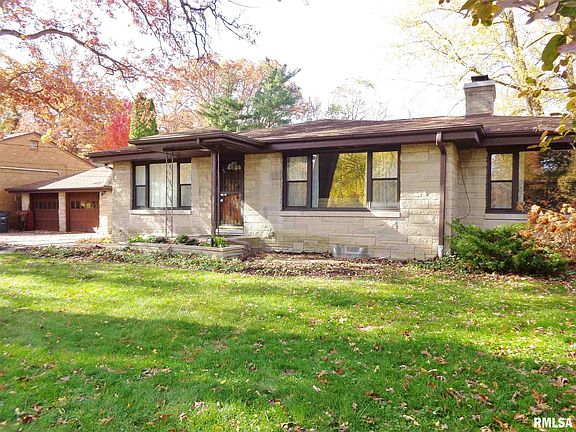 Large all stone and brick ranch located in East Peoria! Amenities include; 3 bedrooms, 2 1/2 baths, attached 2 car garage, nearly 1/2 acre beautiful lot with fenced rear yard-shed-new patio, interior freshly painted(2018), fully applianced kitchen, tile through entry-formal dining room-kitchen, spacious living room has hardwood floors-columns-gas log fireplace, main floor office area, plentiful closet space, large tiled breezeway could be another living space, semi-finished basement offers plenty of storage-full bath-family room with fireplace, immediate occupancy! $144,900