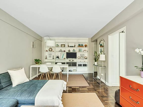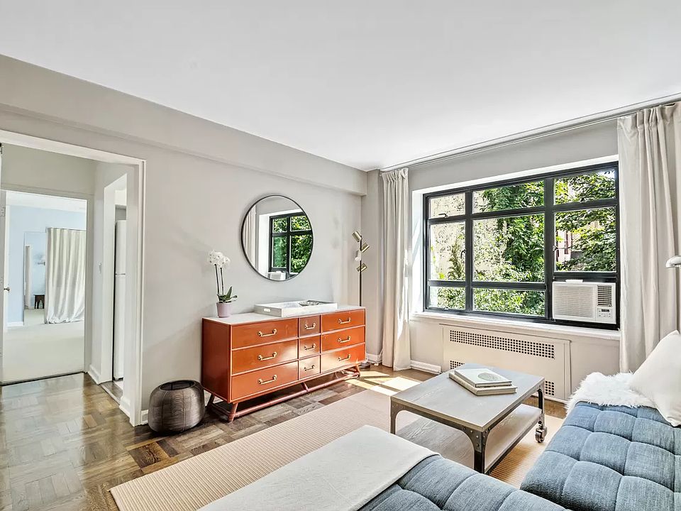 100 Remsen Street is a classic mid-century co-op in the heart of historic Brooklyn Heights. This stylish third-floor, one bedroom apartment is in excellent, turnkey condition, with great light and views facing east overlooking peaceful gardens. *****You currently have the opportunity to combine with 3E (Studio/ 1 bath)- which is for sale for $245K. Create a 2 bed 2 bath! Board approval required***** The co-op permits unlimited subletting with board approval. All utilities (electric, heat, hot water + cooking gas) are included in the maintenance. Especially low maintenance at 3D. A CASH purchase is required. Easy to show at any time! The spacious living room has beautifully finished parquet floors stained in dark walnut, a full wall of customized built-in shelving and ample room for large furniture including a dining area. The recently installed black windows are double glazed. They are a signature feature of the co-op and contain built-in a/cs in the living room and bedroom. The modern, windowed kitchen includes a Fisher Paykal gas range, a Whirlpool microwave, and an 18 inch dishwasher. White quartz countertops and and brand new white cabinets doors give it a sleek, contemporary look. There is a handy pulldown faucet and separate water filter faucet. You'll sleep soundly in the king-size bedroom which has a quiet, eastern aspect and wall to wall wool Berber carpeting in a neutral color. Storage is excellent throughout with a deep entryway closet and a very spacious bedroom closet. The stylish bathroom has a black powder coated wall hamper, a deep tub, additional storage and a sliding barn door. There is wait-listed storage in the basement for an additional fee. The co-op employs a live-in super, a porter, and the lobby is attended by a doorman Monday through Friday 9am to 5pm. The co-op is pet-friendly, and UNLIMITED sub-letting is allowed with board approval as soon as you become shareholder making this an investor-friendly option. There is a bright and well-lit laundry room and Verizon FIOS is available. ALL utilities are included in the maintenance including electric, heat, hot water and cooking gas. There are two elevators, and this apt is accessible by just two flights of stairs. The co-op permits trust purchases, co-purchases, gifts, and pied-à-terres. The land lease extends to 2043 and limits financing options, so a cash purchase is most likely required. The flip tax is paid by seller. There is an indefinite capital assessment of $140.93 pcm. The Brooklyn Heights Promenade is two blocks away and the stunning Brooklyn Bridge Park is also very close. Enjoy outdoor dining opportunities on Montague Street and bustling Atlantic Avenue, and the convenience of local gourmet food stores and supermarkets. The 2/3, A/C, R, F, 4/5 are nearby as well as the East River Ferry. Let's do this!