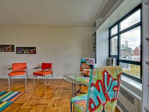 CONTRACT SIGNED LARGE 1 BEDROOM WITH BEST VIEWS Located in the heart of Brooklyn Heights on a beautiful tree lined street at the corner of Henry Street - only one block to Montague Street and two blocks to all subways. Top floor sun filled corner apartment has Manhattan and Brooklyn views. New windows and part of the electric included along with gas and water. Living room with dining area has parquet floors, custom built-in bookcases and grand views. Windowed kitchen has good counter and cabinet space. The spacious bedroom looks at an old church and has 2 closets. More closets off the hall and in the living room. The land lease is coming due in 2043. There will be additional assessments. Extras include full services, live-in super, laundry room and bike storage (small fee). Close to the new amazing Brooklyn Bridge Park and the Promenade.