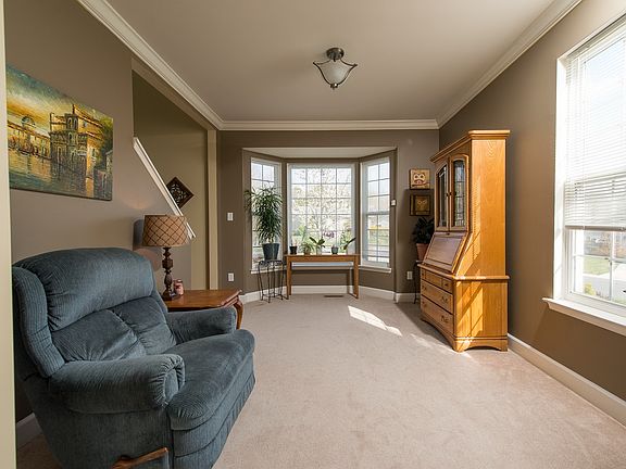 Absolutely Beautiful 5 bedroom, 3.5 bath brick-front colonial with 2 car garage and finished basement, situated on a 1.17 acre, professionally landscaped corner lot. This lovely home has great curb appeal and won't disappoint once inside! Fully Loaded w/Upgraded Features & Amenities that include: hardwoods in center hall and powder room; two story foyer; crown and chair molding in the dining room; crown molding in the living room; large family room with propane gas fireplace; lots of windows to allow natural light plus bay windows in living room and family room. The kitchen boasts a large breakfast nook with French door access to the deck, closet pantry,42 inch cabinets, tiled backsplash, Corian Counters, center island, recessed lighting wall oven & microwave, gas cooktop & plenty of counter space. The upstairs features a master bedroom suite with: vaulted ceilings, separate sitting room, large walk in closet, master bath with double vanity, separate shower & soaking tub. Also upstairs you will find 3 more generously sized bedrooms and the laundry room. Still need more room, the fully finished basement provides another large family room, full bath with oversized walk in shower, bedroom/office with sliders to nice paver patio, plus plenty of storage room. Open floor plan and neutrally decorated, and this lovely home has a large open side yard and a back deck that overlooks trees. Public Water & Sewer. Low HOA of $380 per year.