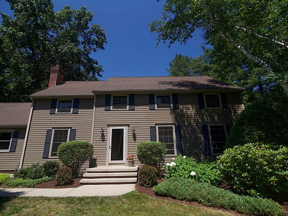 Original model home for Bedford Close plus it backs up to forever green! Well maintained 4BR/2.5B home w/ a private back yard. Living room w/ HW floors, eat in kitchen w/ custom cabinets, Formal dining w/ cozy pellet stove, computer/music room, convenient mud entry and laundry. Upstairs Master suite and 3BR's share a bath. Lower level family room and utility space. Sliders from kitchen to expansive rear deck overlooking the inground pool. Private back yard backs up to common green area. Fenced yard for playing, plus two storage sheds for pool toys and tools.