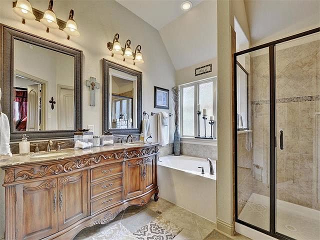 Elegant 1.5 story home that boasts custom designer features throughout! Abundant natural light flows through every room of this 4Br w/ Upstairs bonus room. The open kitchen has Knotty Alder cabinets, exquisite granite counter tops, center island w/ breakfast bar & walk-in pantry. Pride of ownership conveys through this well thought out floorplan. The master bath retreat features dual vanities, garden tub, & separate shower. Professionally landscaped, Large backyard w/ covered patio w/ pergola. LHISD