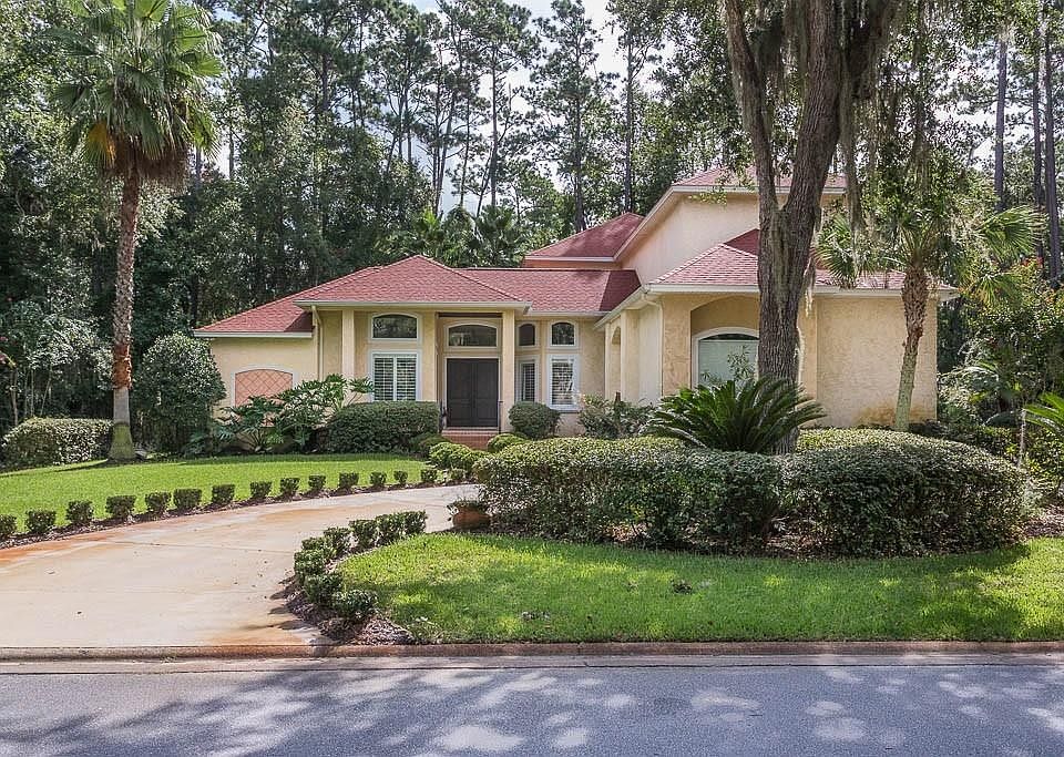 Gorgeous home in the Gated King & Prince Golf Community at Hampton Plantation.This unique Mediterranean style home has TONS of curb appeal with circular drive.Upon entering,you are greeted with an inviting view of pool which is surrounded by home.Formal study/dining room on either side of foyer. Master Suite features coffered ceilings,french doors leading to pool,HUGE master bath and walk in closet.Gourmet kitchen features custom cabinets,granite tops,breakfast bar. Kitchen flows into great room with soaring 2 story ceiling,classic fireplace and half bath.Second bedroom on main with full bath. Upstairs you find 2 more bedrooms,also w/en-suite baths, an office and elegant library with built-in book cases. This exceptional home is filled with upgrades such as 8 ft doors, 10 ft plus ceilings, crown molding and lots of storage.The PERFECT home for entertaining with expansive screened in covered areas off back of home and lush landscaping.