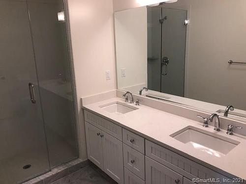 .West Norwalk location, minutes to RT 95/ metro north/Stamford., Secure Elevator building protected parking under building 3rd floor -2 bedrooms with 2 full large granite baths, Open concept kitchen and living area , walk in closets , wall to wall carpeting, gas range, dishwasher, refrigerator ,granite counters ,full size washer and dryer in the unit , efficient gas heat and central air ,private balcony deck, full fire sprinklers for your protection. Enjoy the luxury of newer construction. Exercise room available for tenants. Move in /Move out fee payable by tenant-$250 Walk to restaurants, shopping, and bus lines. No tenant provided credit reports --references and work history submit with application PLEASE REMOVE YOUR SHOES WHEN SHOWING and wear a mask