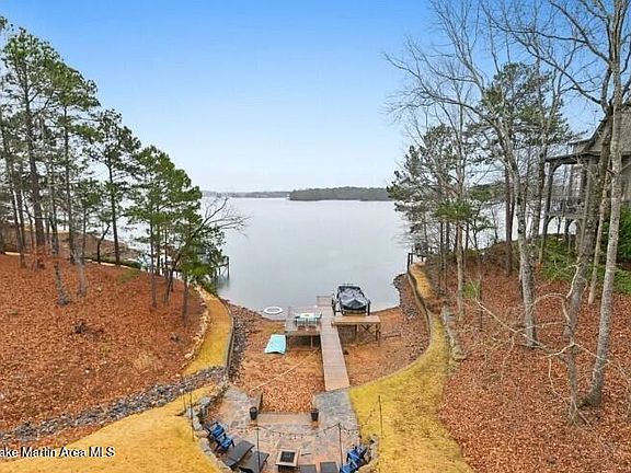 IT'S ALL ABOUT THE LAKE VIEW! Exceptional lakefront home in The Ridge on Lake Martin. Enjoy top-tier amenities: clubhouse, tennis, swimming, fitness center, park. Gated w/ 24hr security. Outdoor paradise w/ main-level deck, fireplace/TV, lower deck, grill, hot tub hookup, fire pit, dock, boat lift & lighted storage. Inside: grand entry, reclaimed oak ceilings, 8ft cedar-accented doors, foyer w/ laundry, drop zone & ÂA½ bath. Vaulted great room w/ stone fireplace & seamless indoor/outdoor living. Gourmet kitchen: lakeview dining, high-end appliances, butler's pantry, & island. Luxurious MBR w/ tray ceiling, spa-like en suite & walk-in shower. Upper: loft w/ BD, BA & built-in beds/storage. Lower: en suites, guest rm, office/gym, kitchenette/den & pre-wired theater. Owner is AL licensed agent. Outdoor Features: Expansive lake views, main-level deck with fireplace/TV, lower-level deck with lake views/TV, grilling area with hot tub hookup, lakeside fire pit with boulder retaining/flagstone surround, spacious dock with boat lift, cement steps to private lake inlet, and lighted storage under the deck.Interior Features: Grand entry with shiplap walls and reclaimed oak ceilings, 8-ft doors with cedar accents, foyer with laundry, drop zone, half bath, and lower-level access. Vaulted great room with timbered beams, stone fireplace, and seamless indoor/outdoor connection. Lake-facing dining and kitchen with high-end appliances, butler's pantry, and island with bar seating. Master bedroom with shiplap accent wall, trayed ceiling, and en suite with dual vanities, his/her walk-in closets, walk-in shower with dual/rain heads, soaking tub with chandelier, and shiplap backdrop.Upper Level: Loft with double vanity bathroom, walk-in shower, guest bedroom, and four full-size built-in beds with TVs and storage.Lower Level: Two lake-view master bedrooms with walk-in closets/en suites (tiled showers, rain heads, dual vanities), stained concrete floors, guest room with en suite, office/exercise room, kitchenette/den, and pre-wired theater area.Additional Features: Two under-cabinet ice makers, two tankless water heaters, gas cooktop, double ovens, foam insulation, two-car garage, and extra parking.This luxurious lakeside home is ready for you!Owner is a licensed real estate agent in AL.