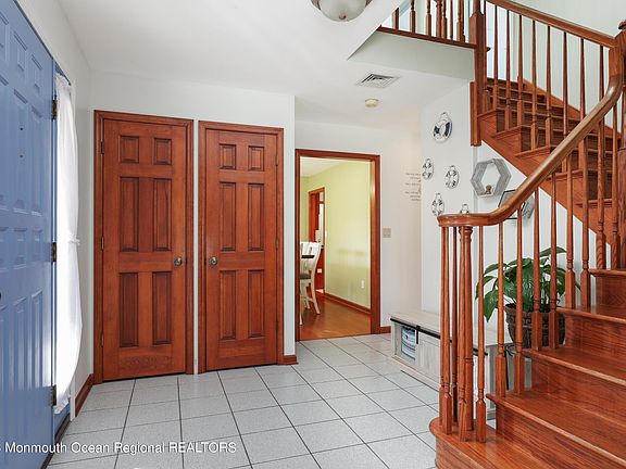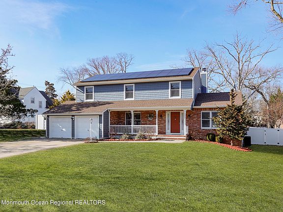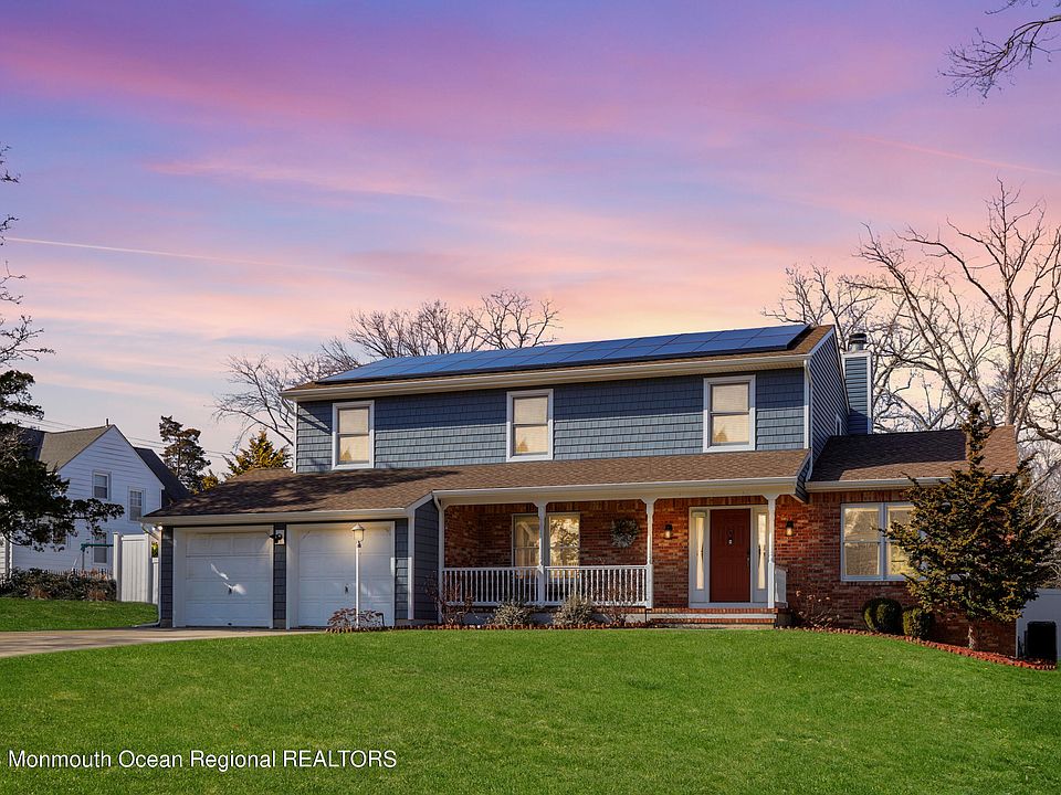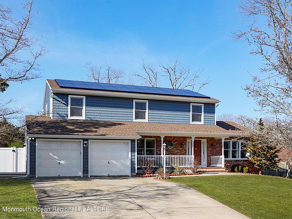 Recently refreshed and beautifully updated, this Colonial home boasts immaculate curb appeal in a fantastic neighborhood and awaits its lucky new owners. Located on a cul de sac and just a short drive to all famed ocean beaches of the Jersey Shore, this 4-bedroom, 3.5-bathroom home is an incredible catch. A rocking chair front porch welcomes you into an interior with hardwood floors and neutral tones, showcasing a spacious living room upon entry with vaulted ceilings. The two story foyer also leads to a traditional dining room and a massive eat-in kitchen with stainless steel appliances, custom cabinetry, dinette area and stone countertops. Connecting the kitchen and family room awaits another living room with wood-burning fireplace, ideal for entertaining or relaxing. Upstairs accompanying 3 spacious bedrooms and a full bathroom is your primary bedroom with en suite bathroom. This spacious primary room is equipped with two large barn door closets and full bathroom featuring a double vanity, jacuzzi tub, and shower stall. The fully finished basement offers 3 separate rooms, baseboard heating, walk out doors, another full bathroom and plenty of space for storage. Now step outside into your private backyard oasis, complete with a spacious deck, In Ground Pool, massive lawn space, storage shed and fully fenced perimeter with privacy. WILL NOT LAST LONG!