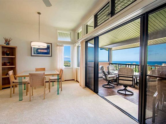 Amazing views from this âTop of the Worldâ Ridge Villa. Year round sunsets and island views of Molokai and Lanai. Watch the whales splashing! European design with top of the line appliances. New Bosch oven and stainless dishwasher. Sub Zero refrigerator. Upscale cabinets, some with glass accent panels. Gorgeous tile work. Two Full baths, large master has a full size tub and walk-in shower. Granite counter tops, new carpet. The condo is perfectly protected from the trade winds. Your clients will be impressed. Top floor, town home, lots of privacy. Offered turnkey. Fully furnished. Close to pool. Close to Montage Spa, Kapalua Bay, and the magnificent Kapalua Bay Course and Club House. Kapalua Resort also has a free shuttle for owners and guests, two championship golf courses, fabulous restaurants and amazing hiking trails. For your buyers who want the best the ridge has to offer.
