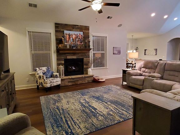 Our beautiful home could be yours! It's in a quaint, very friendly, and newer neighborhood of 43 homes on large lots in Autumn Ridge Subdivision. Very spacious split floor plan ranch with three large bedrooms and a full bath on one side of the home and a large master bedroom suite on the other side. The master suite includes a very large bedroom area, a luxurious soaking tub, linen closet, his and hers walk-in closets and a separate area for the shower and toilet. A large bonus room over the garage can be used as a game room, flex room or even as an additional bedroom. A cathedral ceiling spans across the family room and kitchen creating a beautiful open area. The formal dining room is off the kitchen and is great for large family gatherings or game nights. Kitchen nook with french doors holds a small everyday table and the doors go out to a beautiful brick paver covered patio. The patio area has a weather protected wall that is perfect for a mounted TV. A fire pit area with a sitting wall adds to the atmosphere of the patio making it perfect for entertaining, relaxing and enjoying the view of the mountains. The garage has a built-in workbench with cabinets, epoxy floor and plenty of overhead storage. Move in ready!