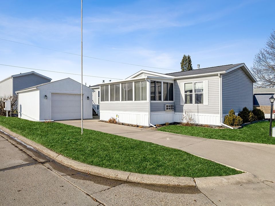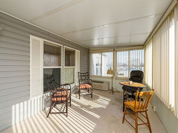 2003 Schult with 1440 sq.ft. {24 X 60}. 3 nice sized bedrooms and 2 baths. Large living room with a gas fireplace. Spacious kitchen with eating area and all appliances. Laundry with washer/dryer included, mud room and mechanicals with side door by garage for ease of carrying groceries etc. Nice updates include refrigerator & dishwasher replaced in 2020, replaced 4 seasons room heating system in 2020. Replaced skirting, replaced exterior steps and landings and painted garage and extended down spouts in 2021. Replaced A/C 2022. Interior painted in 2021. Wonderful 55+ Community and convenient to grocery, shopping and restaurants. Call for a private showing today